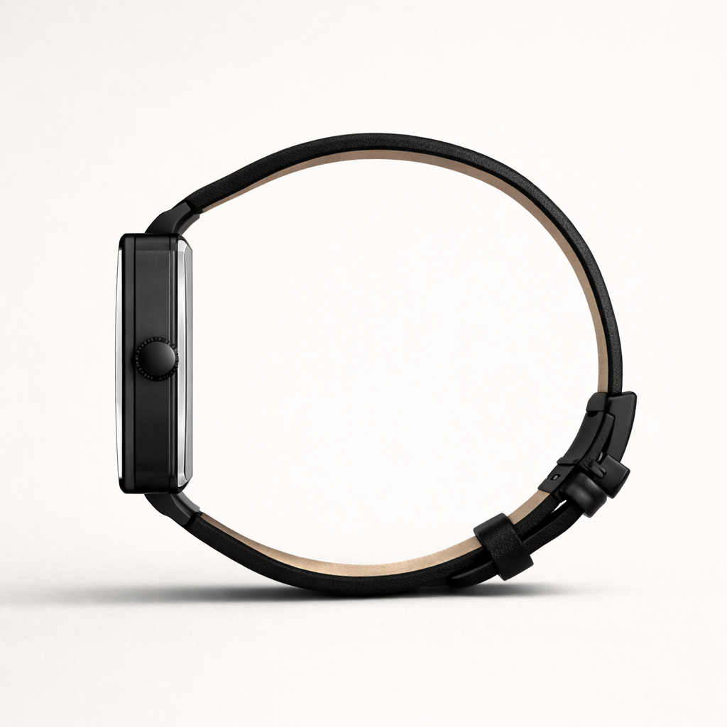 This latest rendition features our iconic black dial, now paired with premium matte black genuine leather straps and a matching matte black buckle — a seamless fusion of texture and tone. The minimalist dial, paired with bold hour markers and a refined matte finish, exudes quiet power and modern edge.