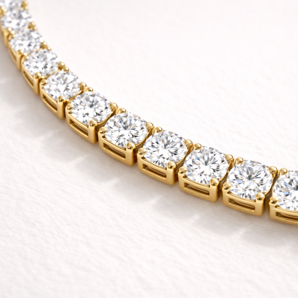 Every bracelet is adorned with AAAAA-grade cubic zirconia stones, individually set for precise alignment, consistent brilliance, and secure placement. Selected for their exceptional clarity and fire, these stones create a continuous, radiant flow that enhances the bracelet’s luxurious presence.